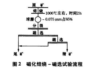 由于采用該工藝需要購買價格較高的磁選機設備,而且經過磁選的鐵精礦品位不是很高,其褐鐵礦售價也不是高,產品只能出售給小型鋼鐵企業。為了提高產品質量,在經過強磁選的基礎上還進行了磁化焙燒試驗。